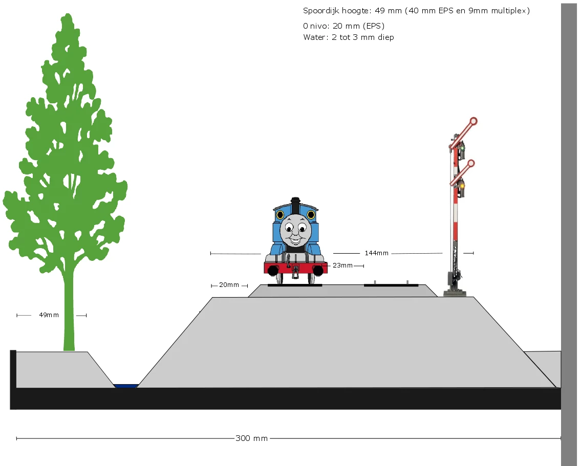 Bij alles zal eerst de ruimte die je tot je beschikking hebt in ogenschouw genomen moeten worden. Pas hierop de plannen aan. Beschik je over een beperkte ruimte is N misschien een betere keuze dan H0. Kies je toch voor H0 ga dan voor korte locomotieven en korte wagons. in wat krappere bogen ogen deze altijd beter dan lange personen wagons. Probeer niet om twee stations in te plannen. Ik plan één station en heb daar een totale lengte van 6,80 mtr voor. Dit lijkt enorm lang maar in werkelijkheid is dit 78 x 6,80 = 530 meter. Iets meer dan 'n halve kilometer dus. Intercity treinen in Nederland hebben doorgaans een perron van 320 mtr. Stoptreinen kunnen wel wat korter zijn, maar in sittard bestaat zelfs een perron van 700 mtr lang.