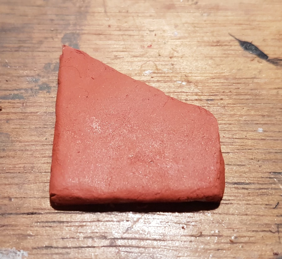 Met een penseel waar de haren van zijn verwijderd, is het uiteinde in de vorm van een baksteen gebogen. De grootte ongeveer bepalen met 1:87. Hiermee is het steentjes motief in de klei gedrukt.