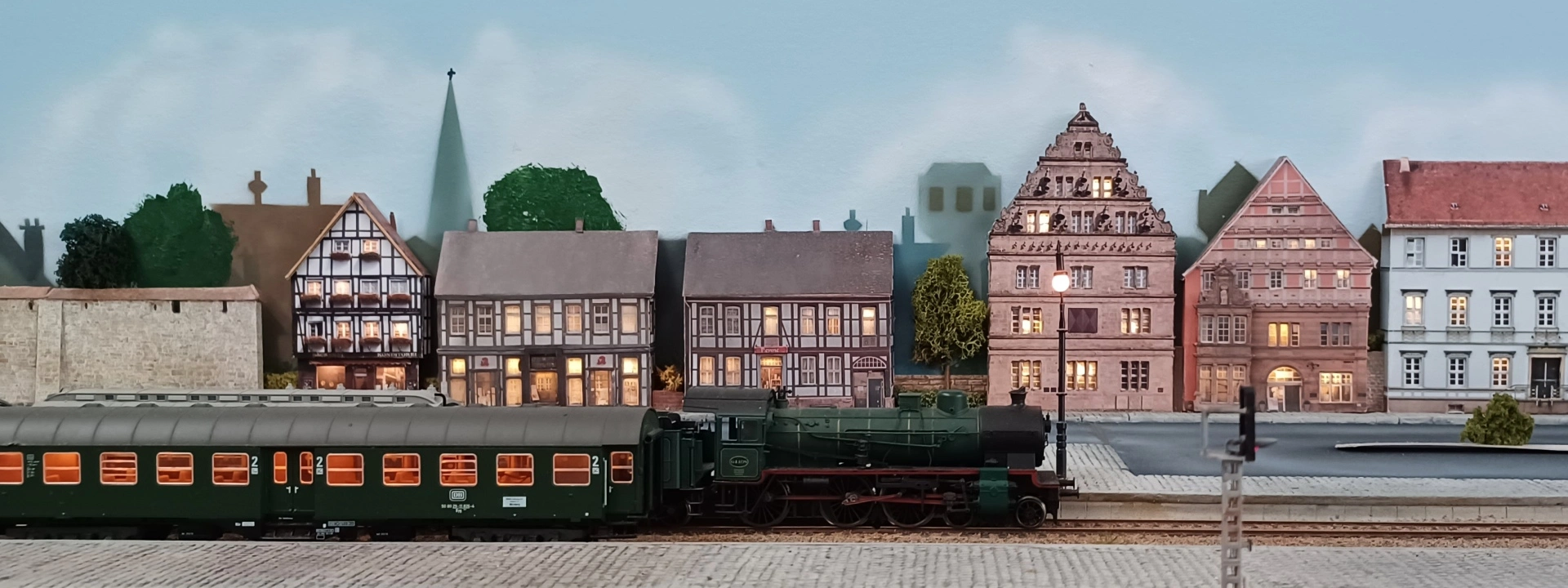 Halfreliëf is dan een leuke oplossing. Over een lengte van ongeveer vier meter moet het er uitzien of het station in een stad is gesitueerd. In kant en klare plastic bouw wordt dit veel te duur. Als alternatief kan er ook met karton een leuke achtergrond gerealiseerd worden. De firma Jowi levert CD's met daarop een aantal bouwplaten. Je kan deze uitprinten. Hiervoor heb je wel een printer nodig die overweg kan met papier tot 300gr/m2. Deze laatste is de dikte die meestal voor bouwplaten gebruikt wordt.