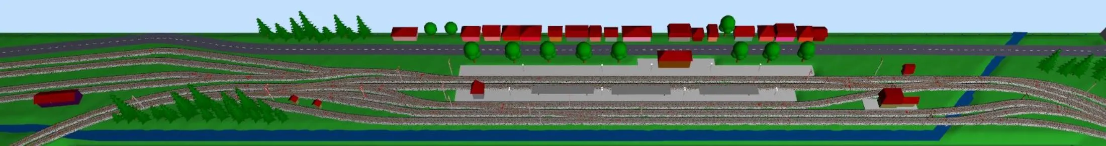 Intercity treinen in Nederland hebben doorgaans een perron van 320 mtr. Stoptreinen kunnen wel wat korter zijn, maar in sittard bestaat zelfs een perron van 700 mtr lang. Dan hebben we het nog niet over alle wissels en kruisingen die ver voor het perron beginnen. Dus zelfs met 6,80 mtr moet het niet meer zijn dan een station uit een provinciestadje. Dit is echt stof tot nadenken en eigenlijk de reden waarom ik mijn vorige baan heb afgebroken. Met de ervaring van mijn vorige baan heb ik voor de nieuwe de volgende wensen: 1 Hoofdzaak moet een stations emplacement met veel rangeer mogelijkheden zijn. Het aardige is om in een programma als koploper de ingewikkelde treinenloop zo natuurlijk mogelijk na te spelen.