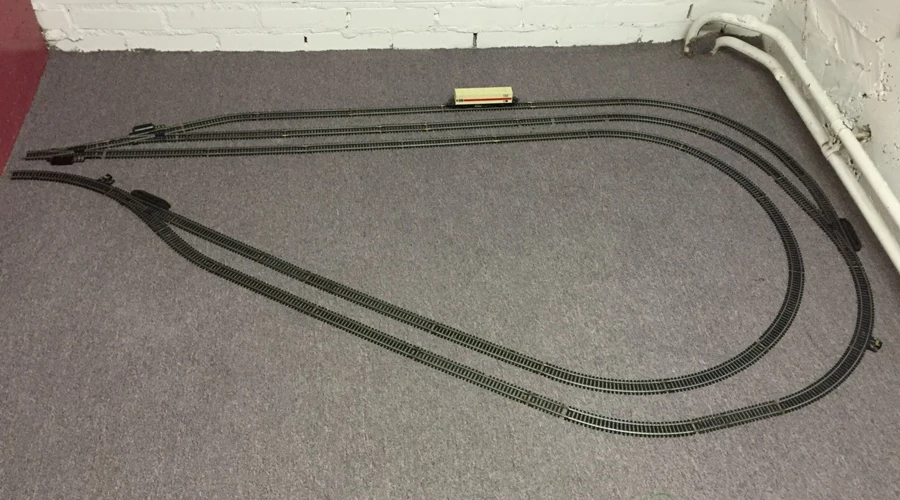 Eerst de rails uitleggen en opmeten om de benodigde grondplaat te zagen. In de planning was een dubbel inhaalspoor gepland, de ruimte laat het toe om er nog ´n spoor naast te leggen. Tegelijkertijd kan het rechter schaduwstation 4 treinen herbergen. Een extra lange en drie normale lengtes. Na het uitzagen zijn de rails (voor het geluid hier ook op de blauwe ondervloer stroken) bevestigd met schroefjes. Dit blijft zo omdat het toch uit het zicht is en de rails met schroefbevestiging makkelijk is te corrigeren. De printplaten, wisselaansturing en bedrading gewoon op de bovenzijde. Lekker makkelijk voor later onderhoud.