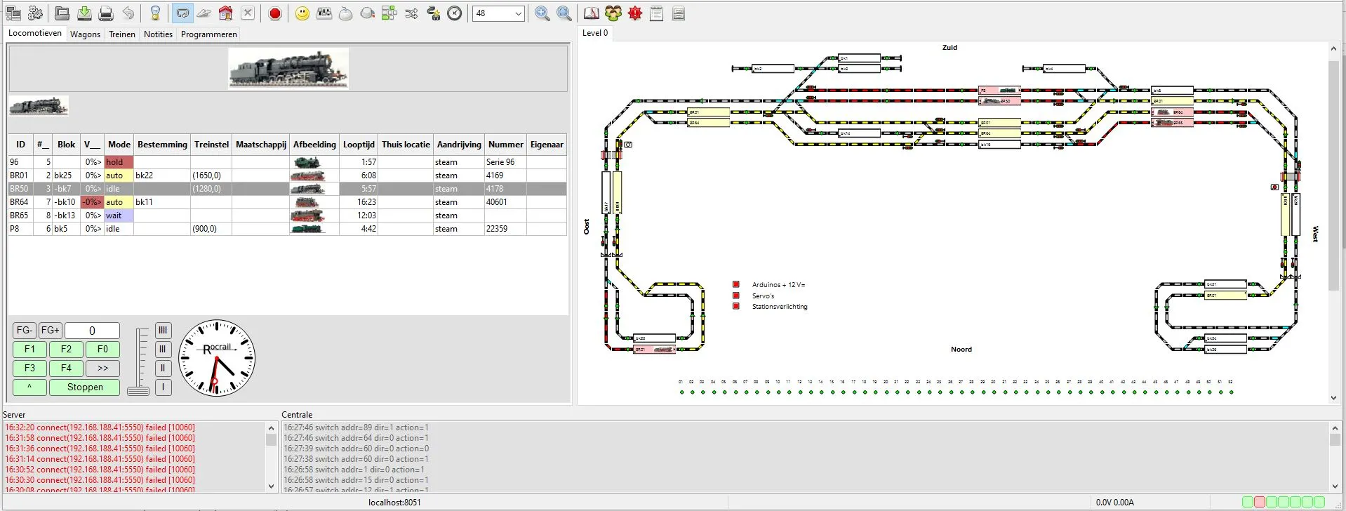Wat Rocrail extra interessant maakt is de mogeljkheid om buiten het reguliere programma ook alles te bedienen via een webbrowser (Rocweb) of mobile App (AndRoc) Dus bedienen via PC, tablet of telefoon. Het kan allemaal. Voor dit laatste is wel een licentiesleutel nodig. Dit kost wel een klein bedrag per jaar. Rocrail is opgebouwd als Server-Client Programma. Dat betekent dat je de server op een PC, Raspberry, Laptop e.d. kan installeren en de client op meerdere PC's of laptops kan zetten. Zodat rocrail vanaf meerdere apparaten te benaderen is. De mogelijkheden zijn dus haast eindeloos.